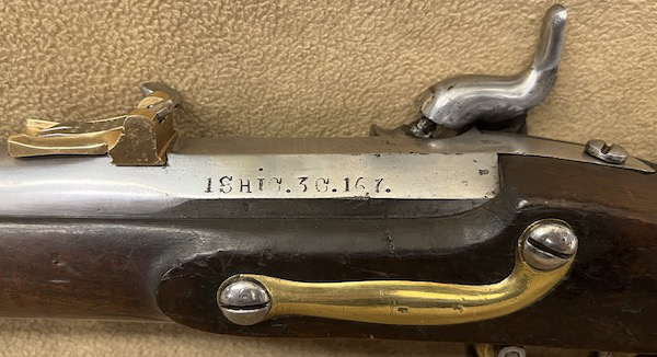 Lütticher Tapriffel M1853 (forløber til Flådens baglader M1853/66 på piben) på piben. |