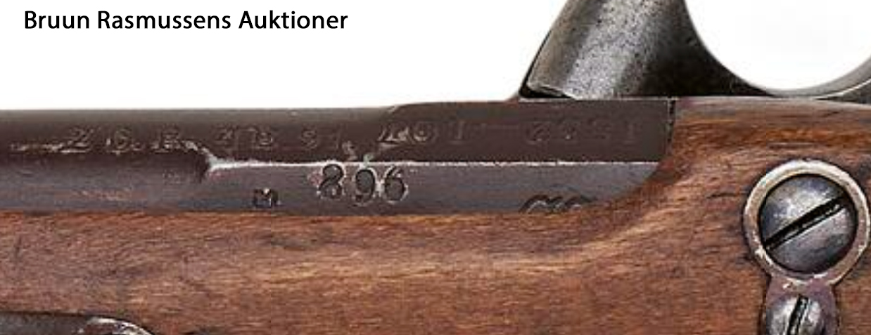 Gevær M1889, mærket Geværfabrikken Kjøbenhavn 1892 og kronet 92. Serienummer 21079. |