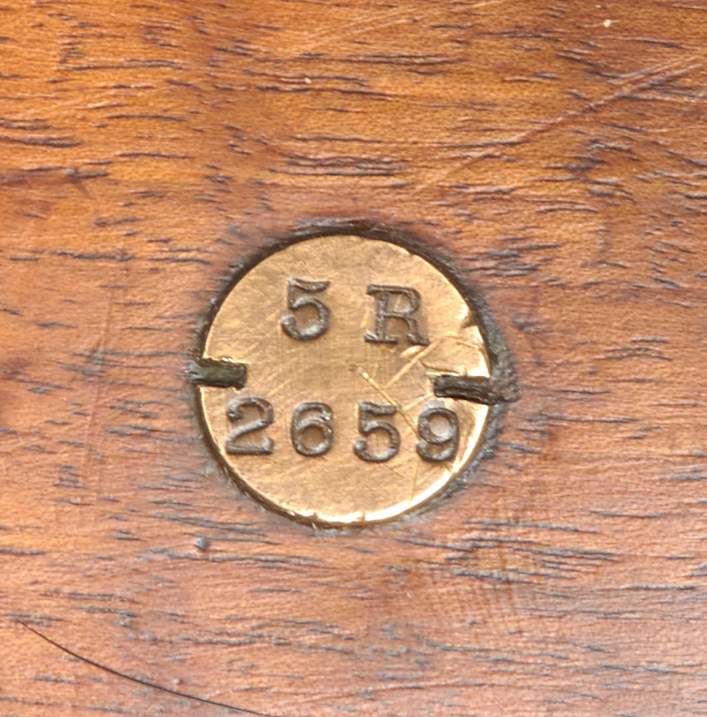 Suhler Bagladeriffel M1854/65 på kolbekappens flig. Endvidere mærket 1854-5630. |