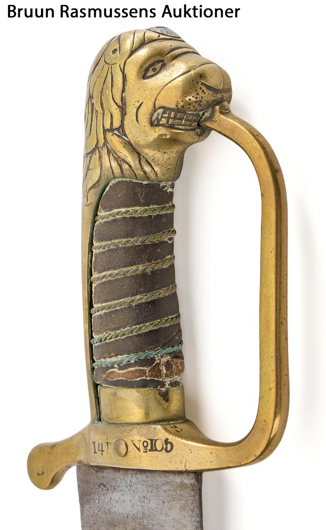 Faskinkniv M1777 for Underkonstabler på fæstet (løvehovedfæste). |