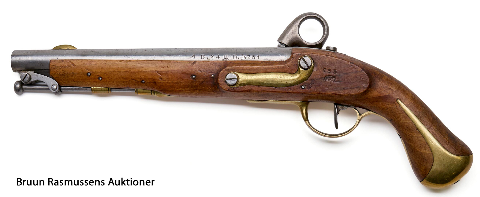 Ringhanepistol M1848 (Kronborg), serienummer 1852-107. Endvidere mærket 896. |