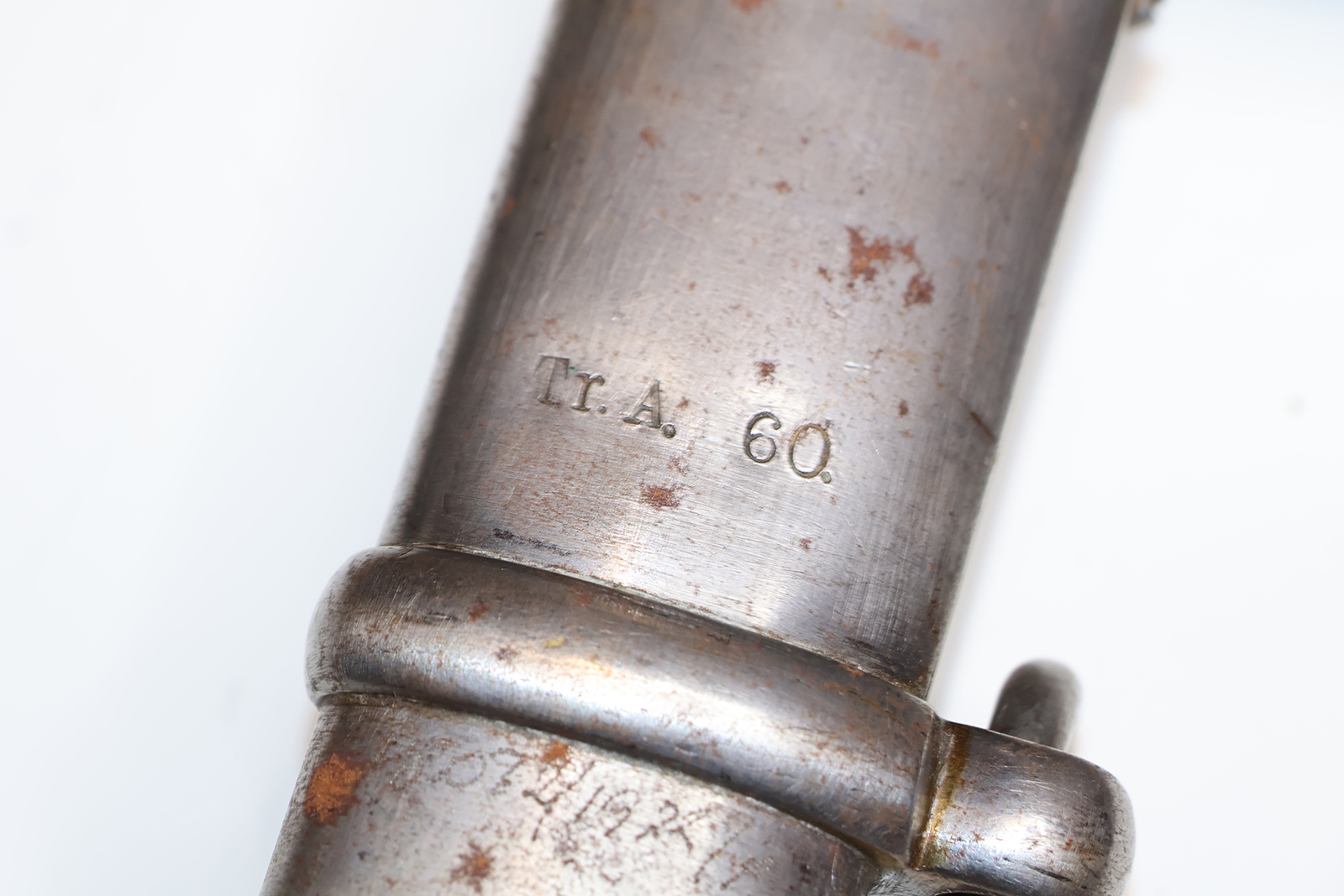 Skede for Ryttersabel M1843/99 (overstreget), endvidere stemplet Tr.A.60. |